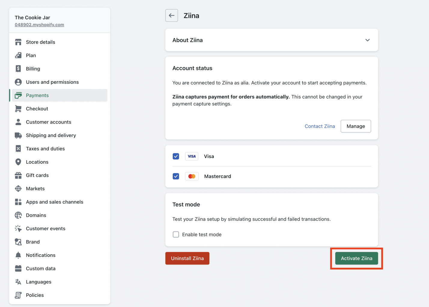How to set up Ziina on Shopify