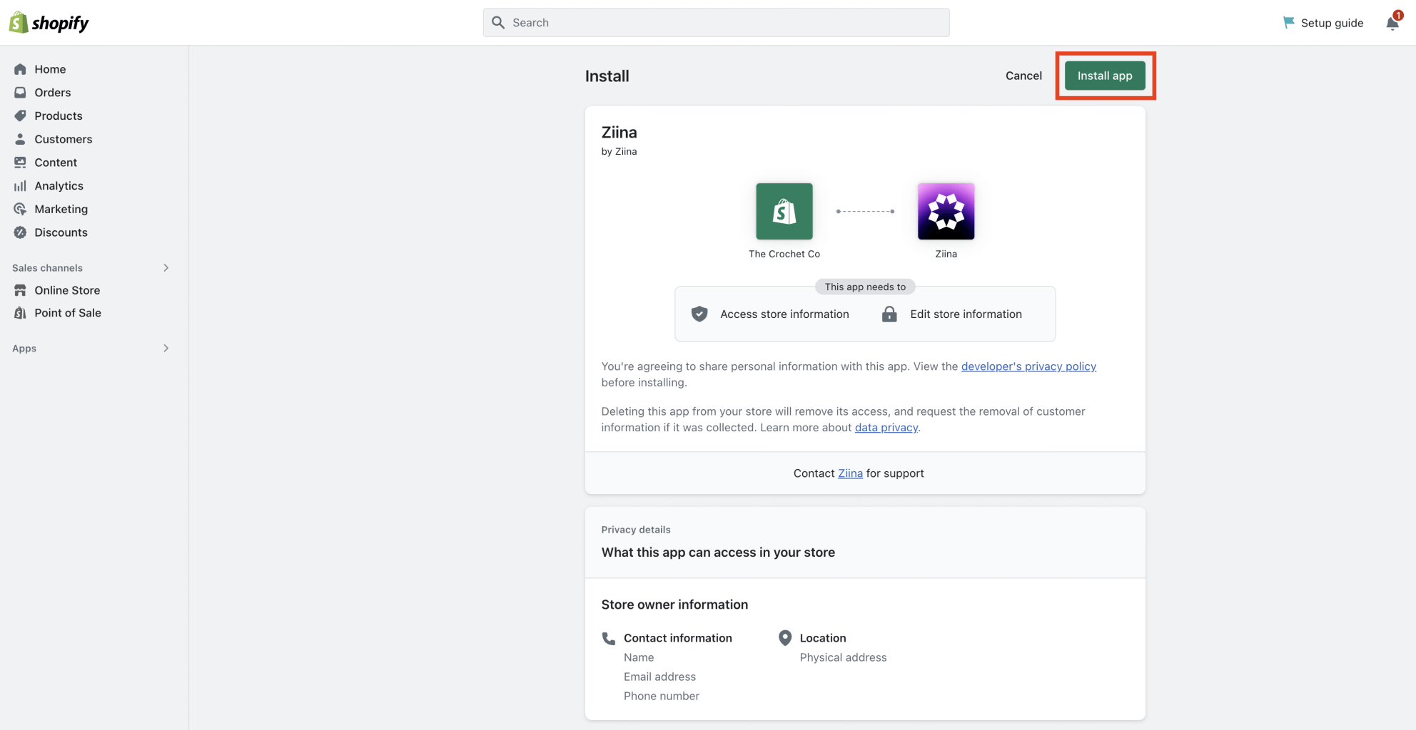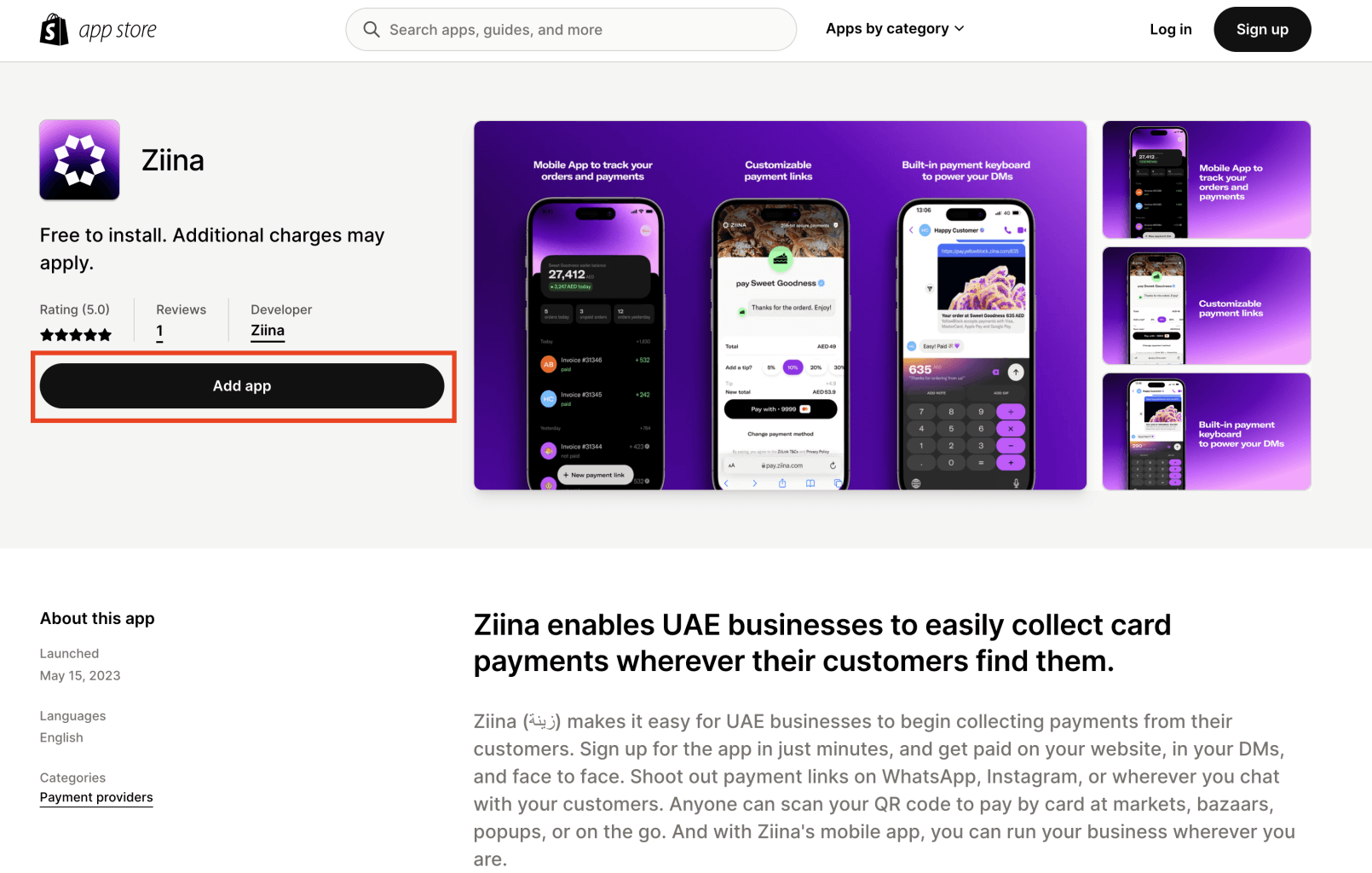 Open Ziina page on the Shopify App Store